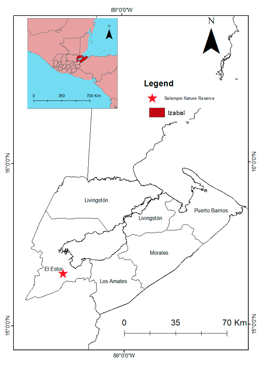 Figure 1. Geographic location of the Selempín Nature Reserve in the department of Izabal, Guatemala.